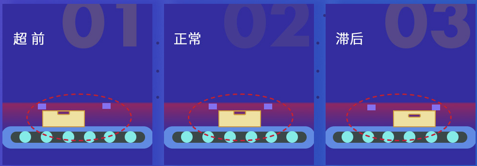 物料错位可能有两种情况,分别为“超前”和“滞后”。