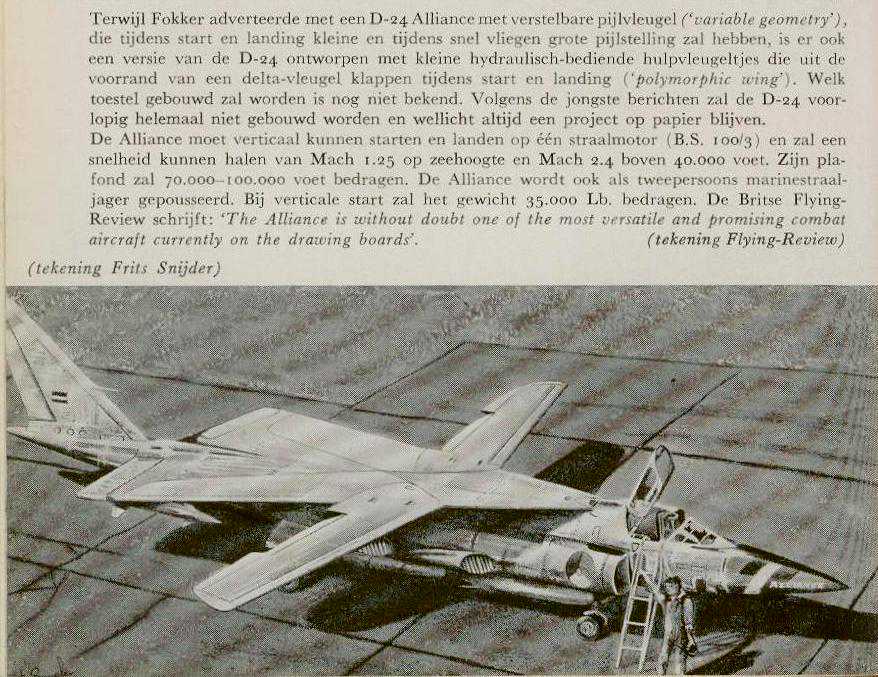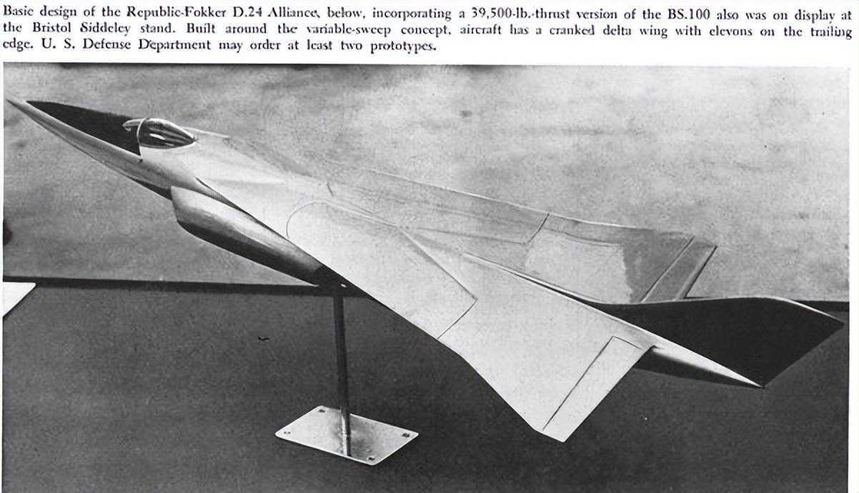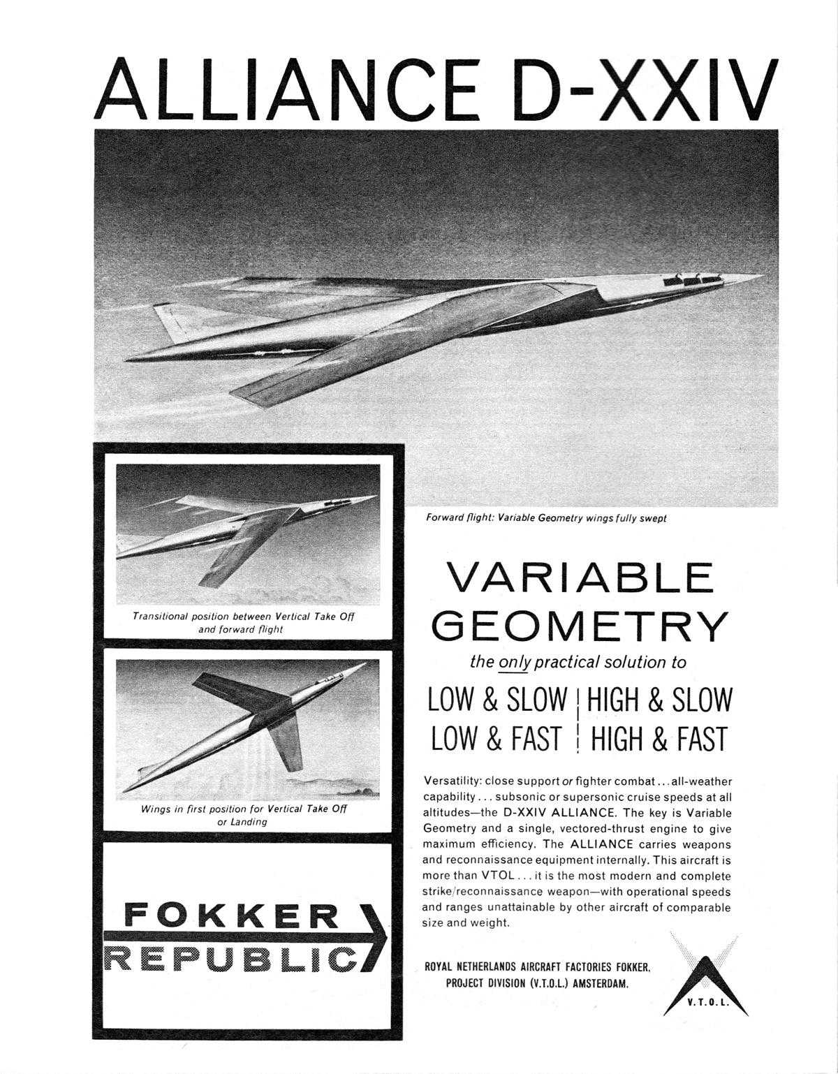 设计小组最终提交的方案命名为福克D-24(D-XXIV),为了纪念合作关系绰号“联盟”,这个项目在共和公司的代号可能是1664A,D-24布局方案源自共和公司在50年代末的项目RAC-758-1A30,这个方案已经包括了折叠式变后掠翼设计,除了不包含垂直起降,基本同D-24一致。