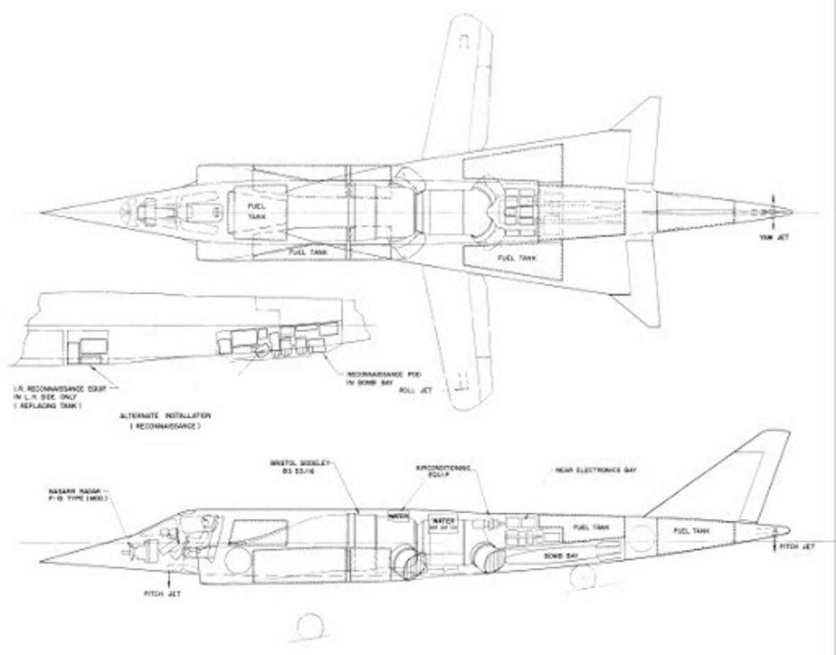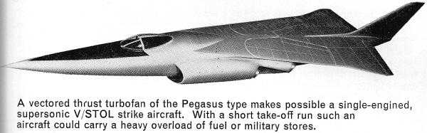 依靠喷嘴转向实现垂直起降,原理和鹞式一样。半圆形进气口安装在机身两侧,驾驶舱后方。使用推力为17500公斤的矢量推力/3发动机,,该发动机下方有四个转向喷嘴,类似于后来的衍生产品罗-罗“飞马”发动机(鹞式采用)和飞马发动机相比,该发动机为了获得更好的高空油耗,有更高的压缩比和更低的循环比,前置喷嘴中还有加力燃烧室,还可以使用燃烧室喷水加力方式提升动力。发动机整体可以从机腹分离,方便维修。