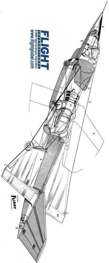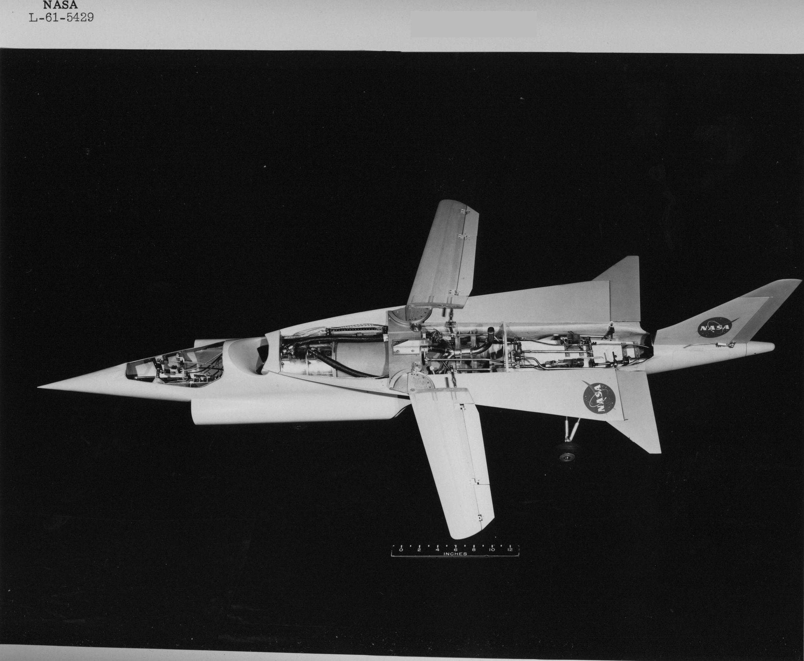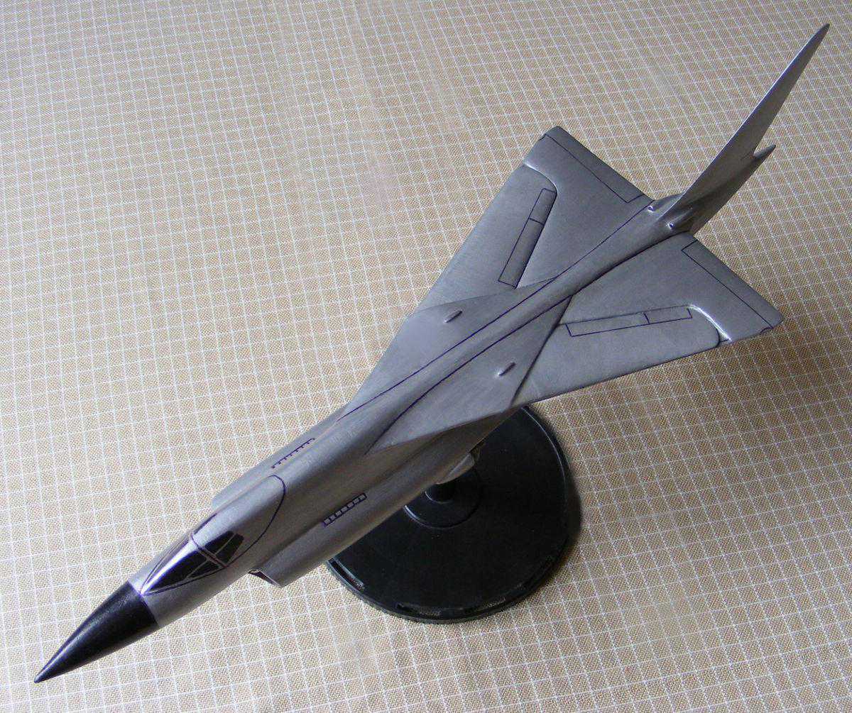 D-24气动布局上来说,是划时代的。单座单发单垂尾,采用了非常罕见的变后掠翼方案,低展弦比(1.09)大三角翼和高展弦比(3.15)变后掠翼结合。可变段机翼类似折叠刮刀,在最大后掠角会折叠在三角翼上方,并完美地组合为三角翼的前缘,提供良好的高速性能。低速阶段会向前展开减小后掠角,折叠翼有自己的独立襟副翼系统,同时原有大三角翼仍然保持气动功能,这样就多了一对可操纵气动面。提供良好的升力和低速控制性能。无水平尾翼,大三角翼后缘襟副翼为一体式,在折叠机翼展开后起到平尾作用。