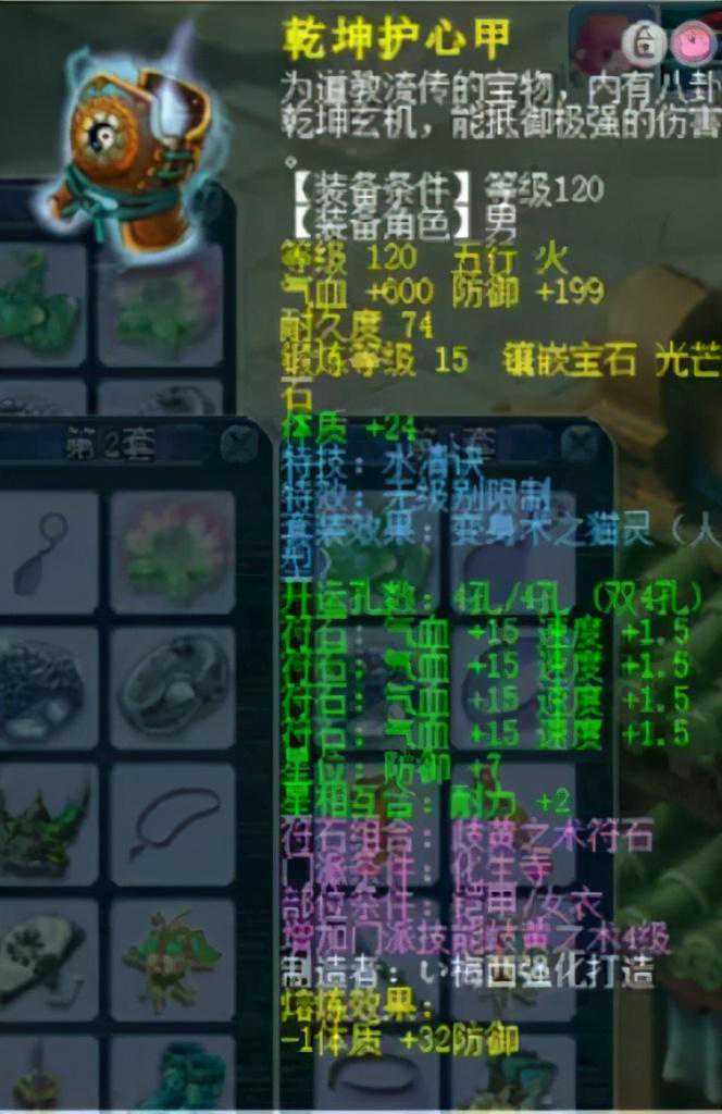 120级15锻光芒的WJB特技衣服,基础防御199,熔炼32点,初始防御231,单加体23点,外加水清特技。其实这件衣服属性比100级高属性铠甲好太多,防御可以但是双加不行。不过毕竟能多打5锻石头,而且还是WJB。