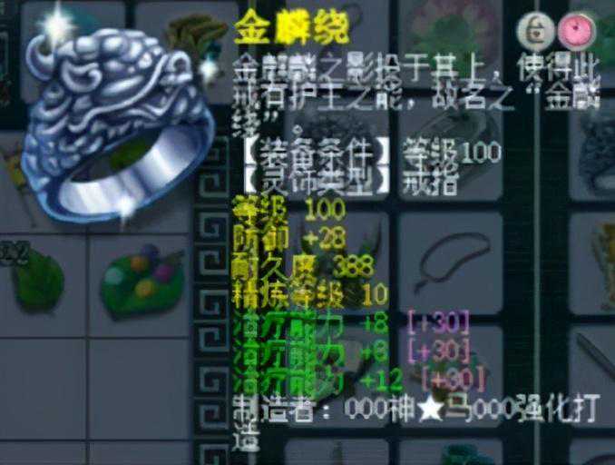 100级主属性28点防御的三治疗戒指,同样是10锻星辉石。