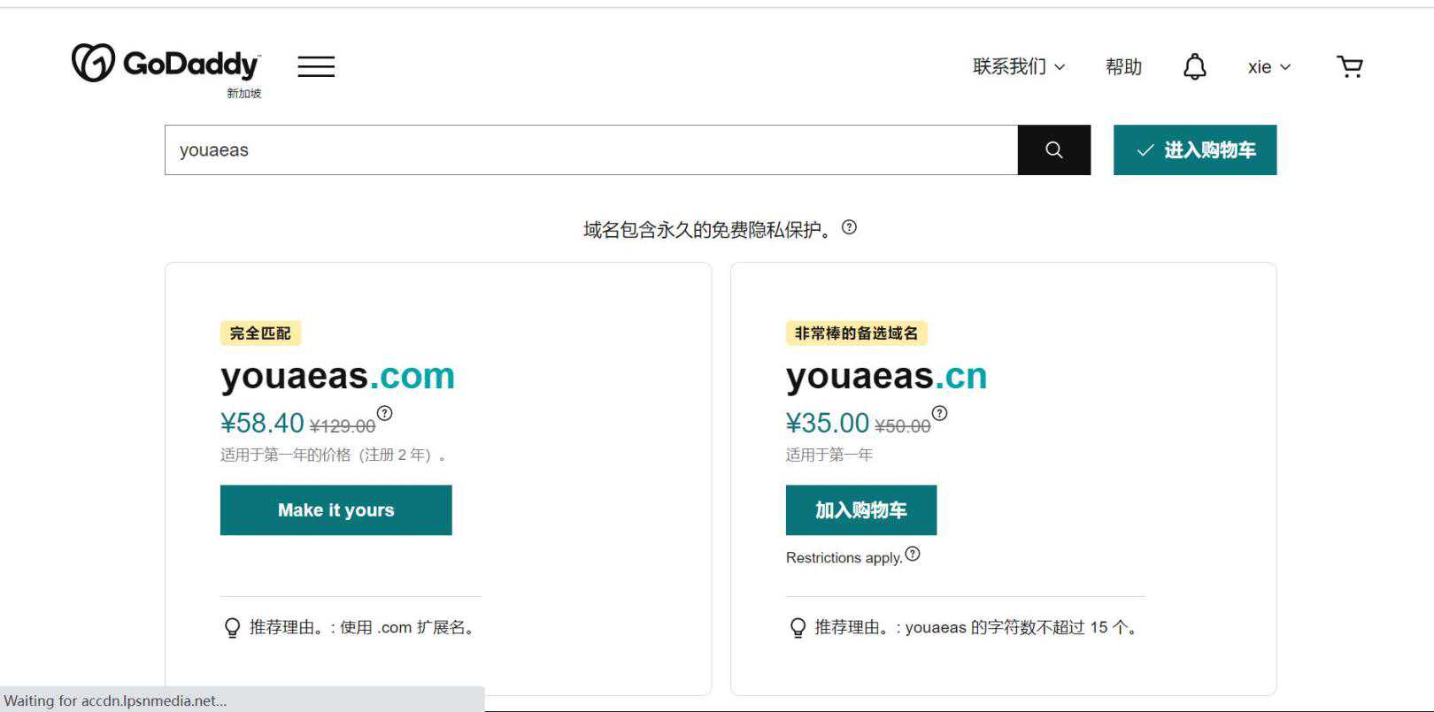 这里推荐去国外的Godaddy平台注册一个域名