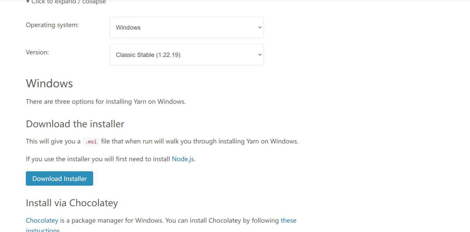 yarn官网,如果不想配置环境变量的话,还是可以采用msi后缀安装。