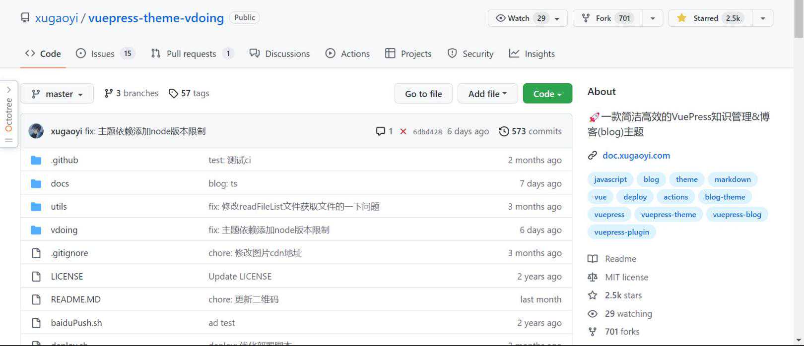 Vdoing主题项目地址,这里建议fork整个仓库,然后自己做一些修改即可,作者大大真的太强了。