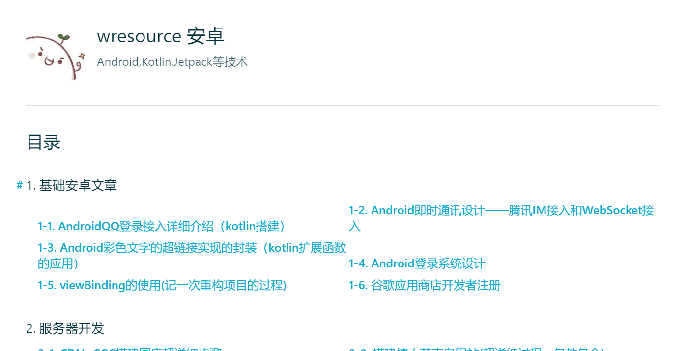 首先配置目录页,这个是文章的导航界面,可以分别查看各个目录下的文章列表