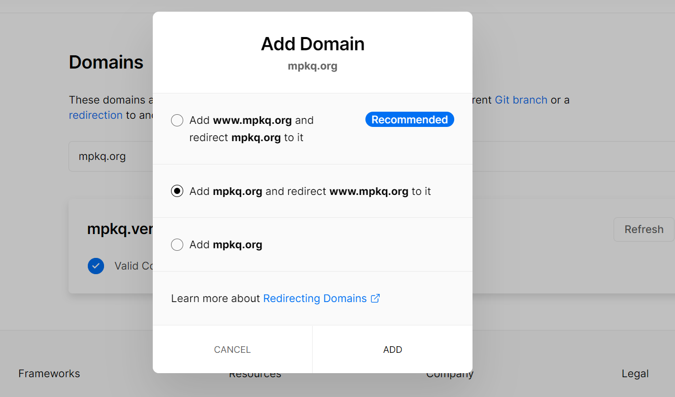 在domains中添加自己的域名