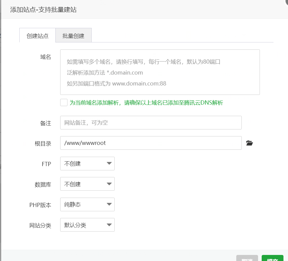 记得填入自己的域名并添加dns解析
