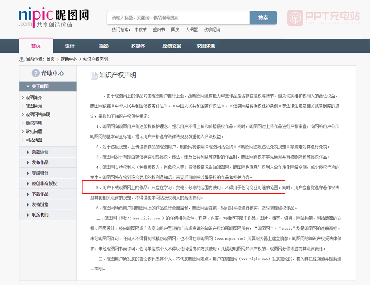但其实,在昵图网官网的知识产权声明第5小点中提到: