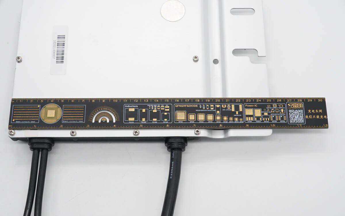 逆变器的金属板长度约为25cm,宽度为164.45mm,厚度为28.31mm,