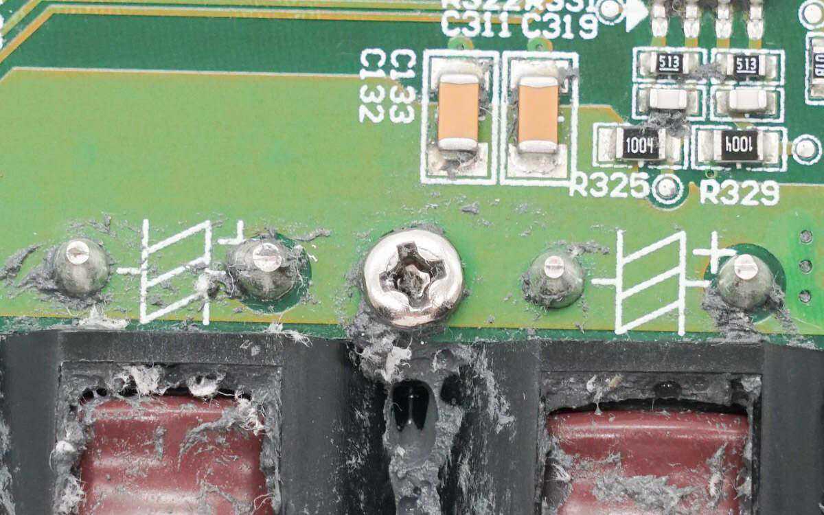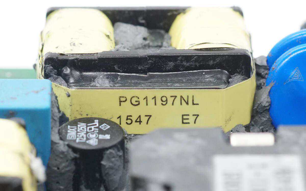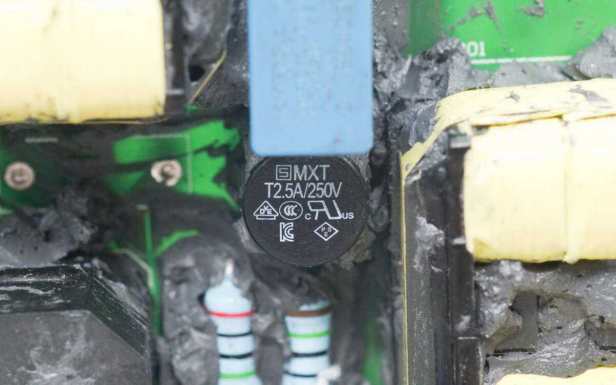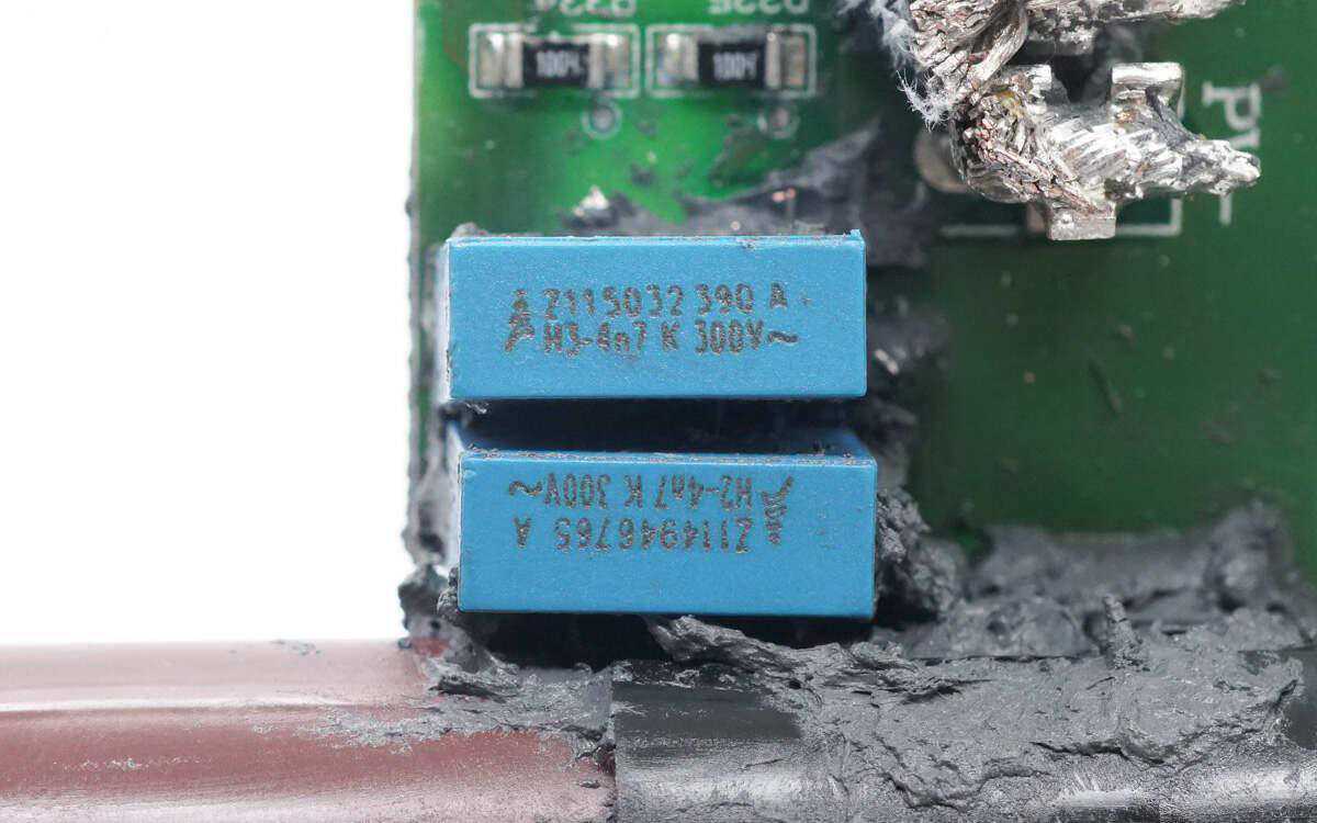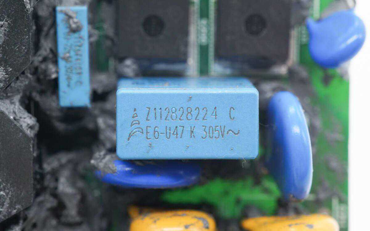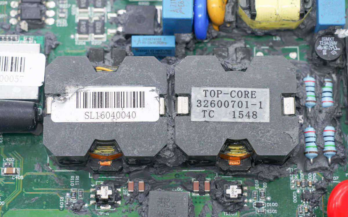 滤波电感磁芯上有胶带绝缘。EPCOS的安规X2电容规格为0.33μF。