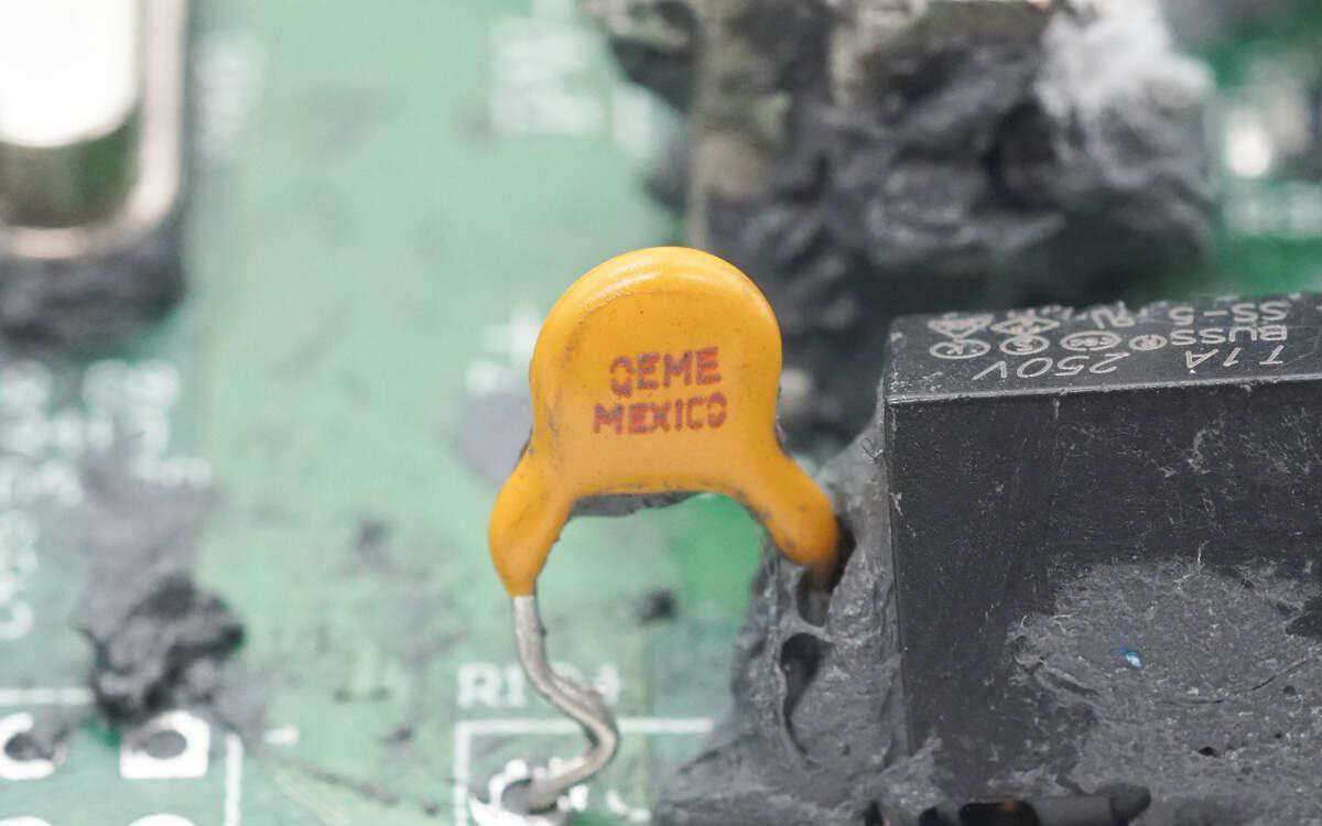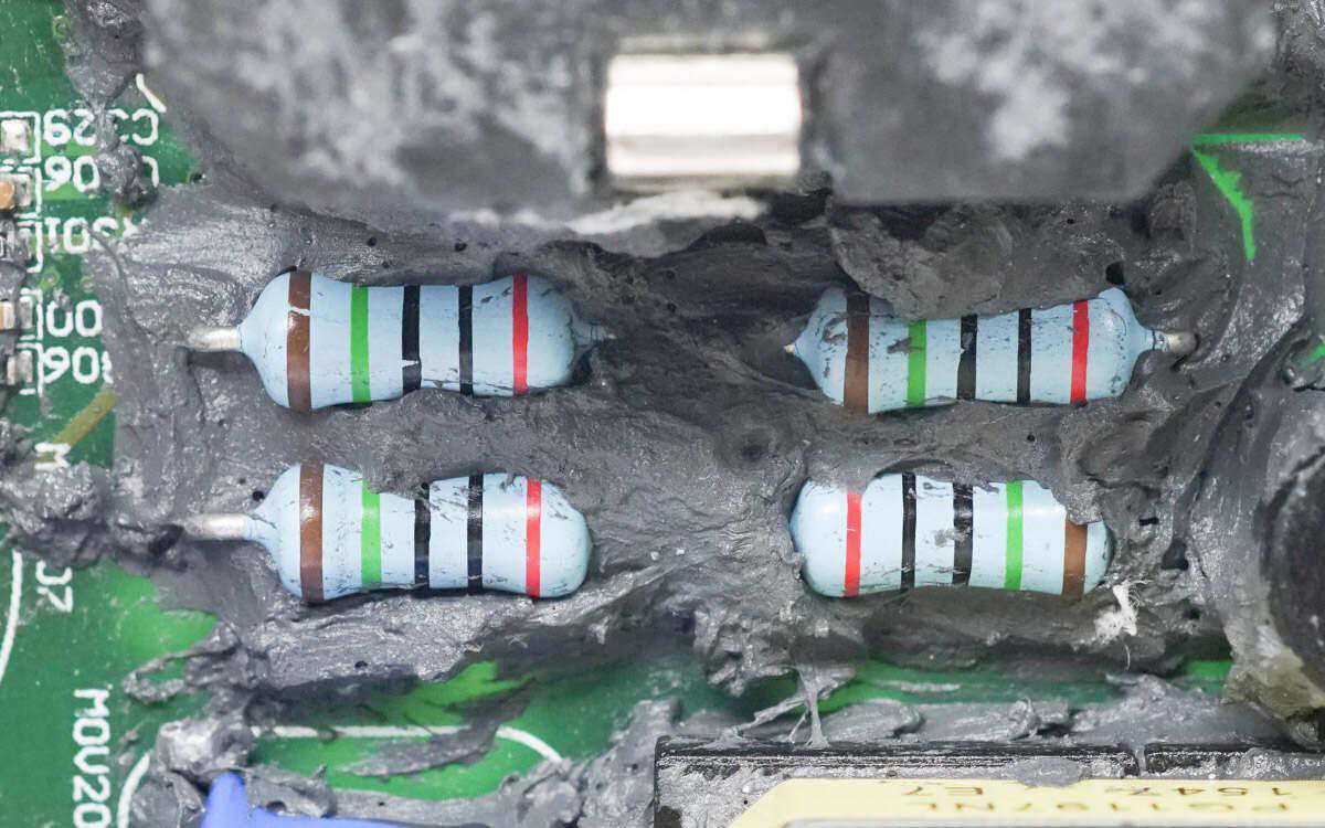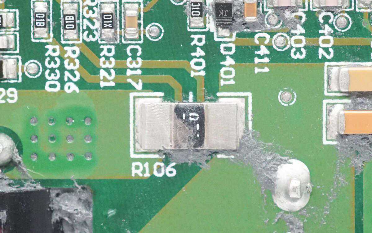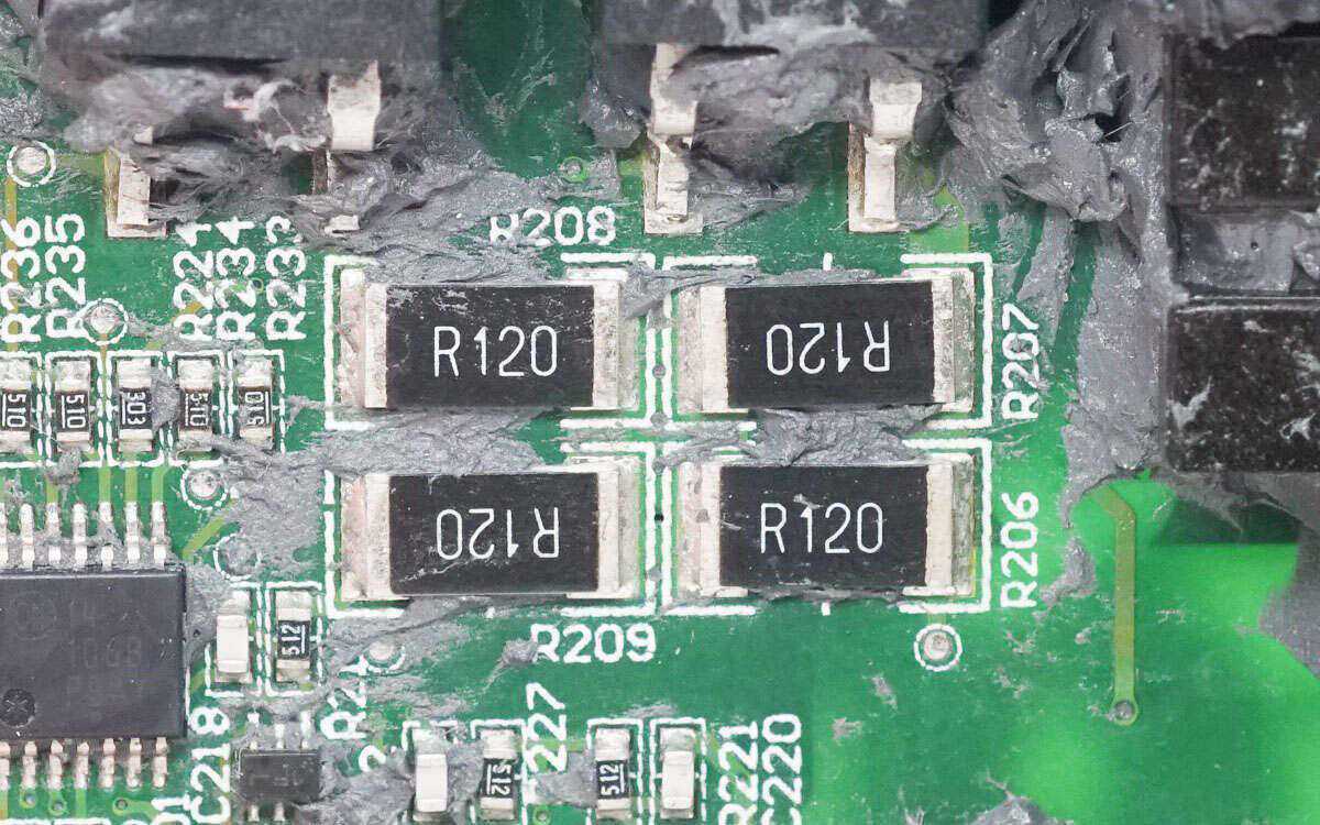 两颗薄膜电容规格为1nF300V。多个电阻用于电压检测。