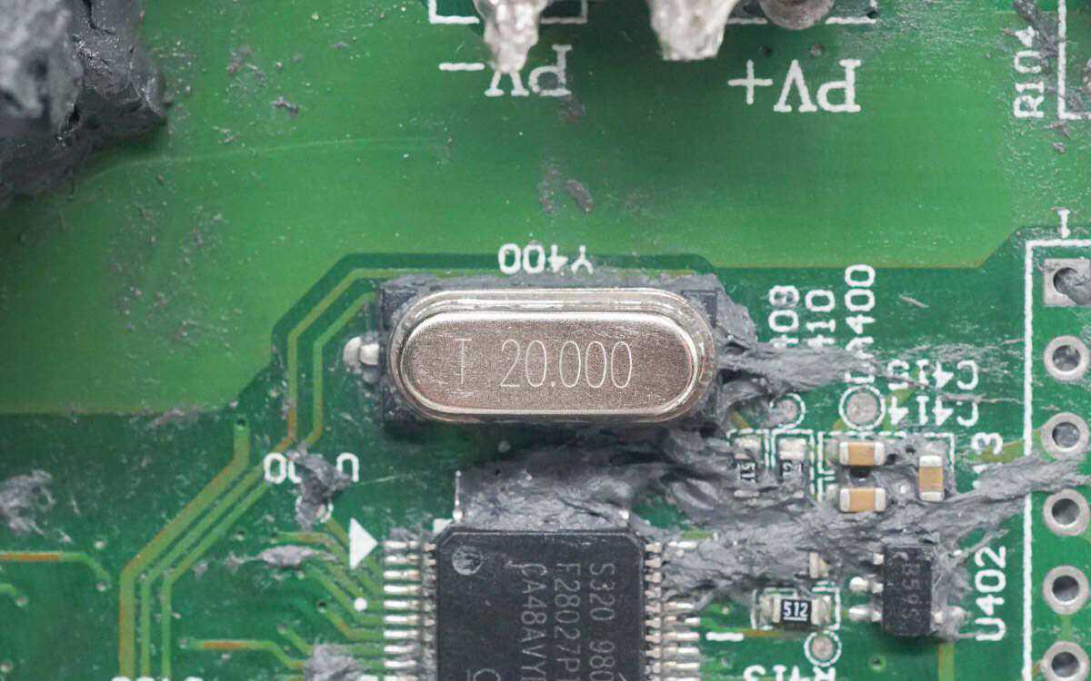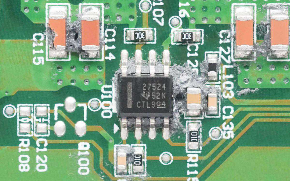 背面还焊接了一颗取样电阻,用于检测输入电流。逆变器主控芯片来自TI德州仪器,
