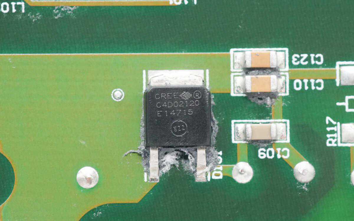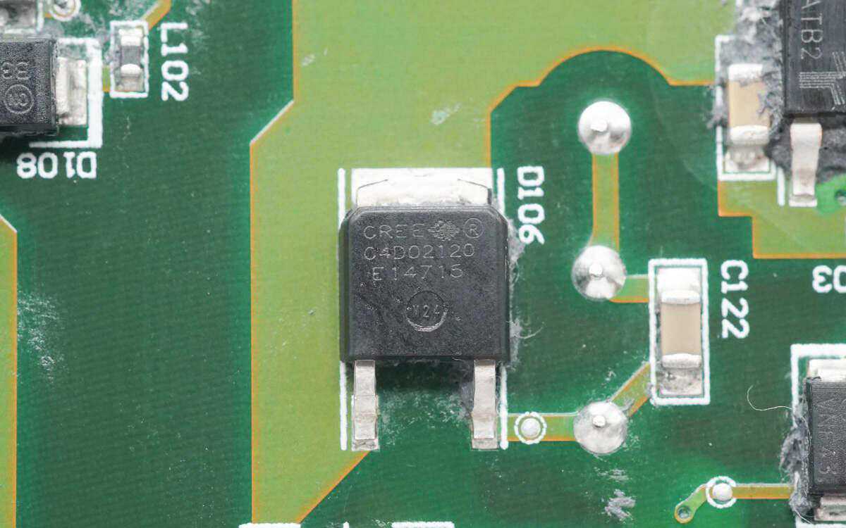 碳化硅二极管来自CREE科锐,型号为C4D02120E,耐压为1200V。