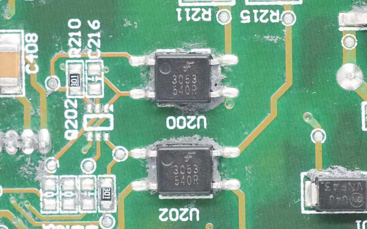 安森美的一颗二极管丝印为75A。3053光耦有两个特写。