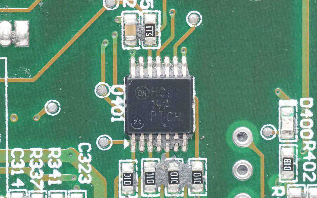 安森美MC74HC14A是一颗带有施密特触发器输入的六路反相器,用于信号整形。