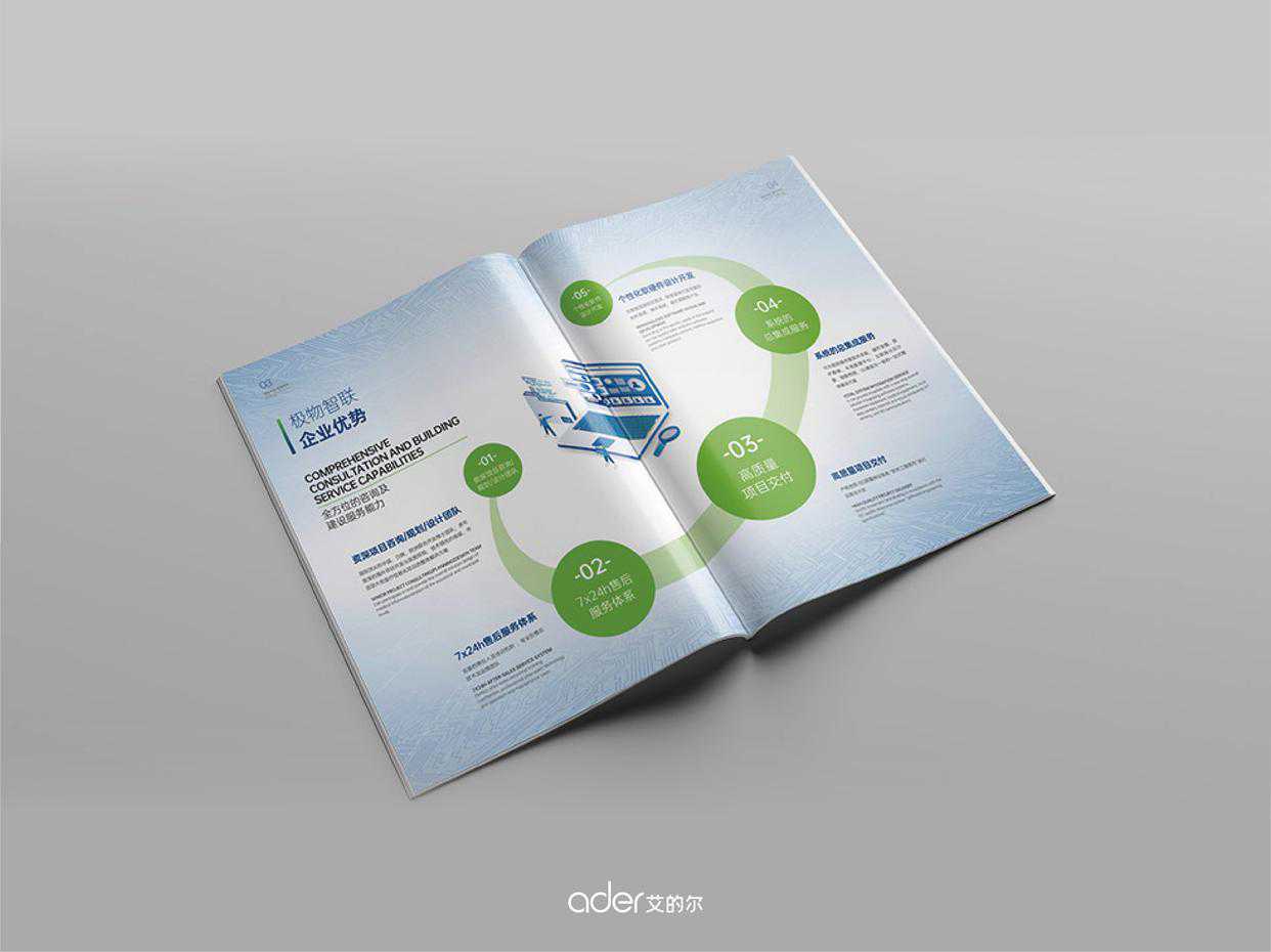 艾的尔品牌设计与企业进行深入沟通,明确企业对于画册设计的需求,画册采用简约风格设计,背景主色调选用了,具有医疗属性色彩的蓝色和绿色,传递出给人以安心健康,沉稳专业的视觉感受。