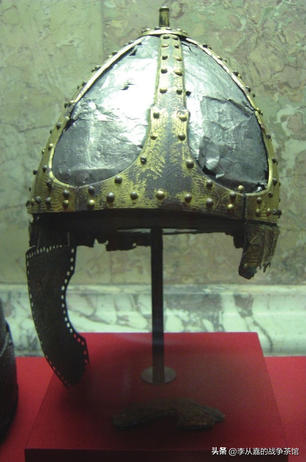 这种武器装备看起来很像是古罗马角斗士,很明显就是山寨或者捡漏罗马帝国晚期装备的结果。墨洛温王朝末期的法兰克人贫富差距很大,不少公社战士上战场远征都很困难,一些战士甚至要拎着木棒上战场。所以尽管当时法兰克人已经有了自己的锥形盔,也有了链甲衫和附加金属片的皮甲背心,还是会有不少战士要穿着当年自己爷爷捡漏的装备上战场。普瓦捷战役中的法兰克人装备上和罗马人看齐,战术上也类似于罗马人。