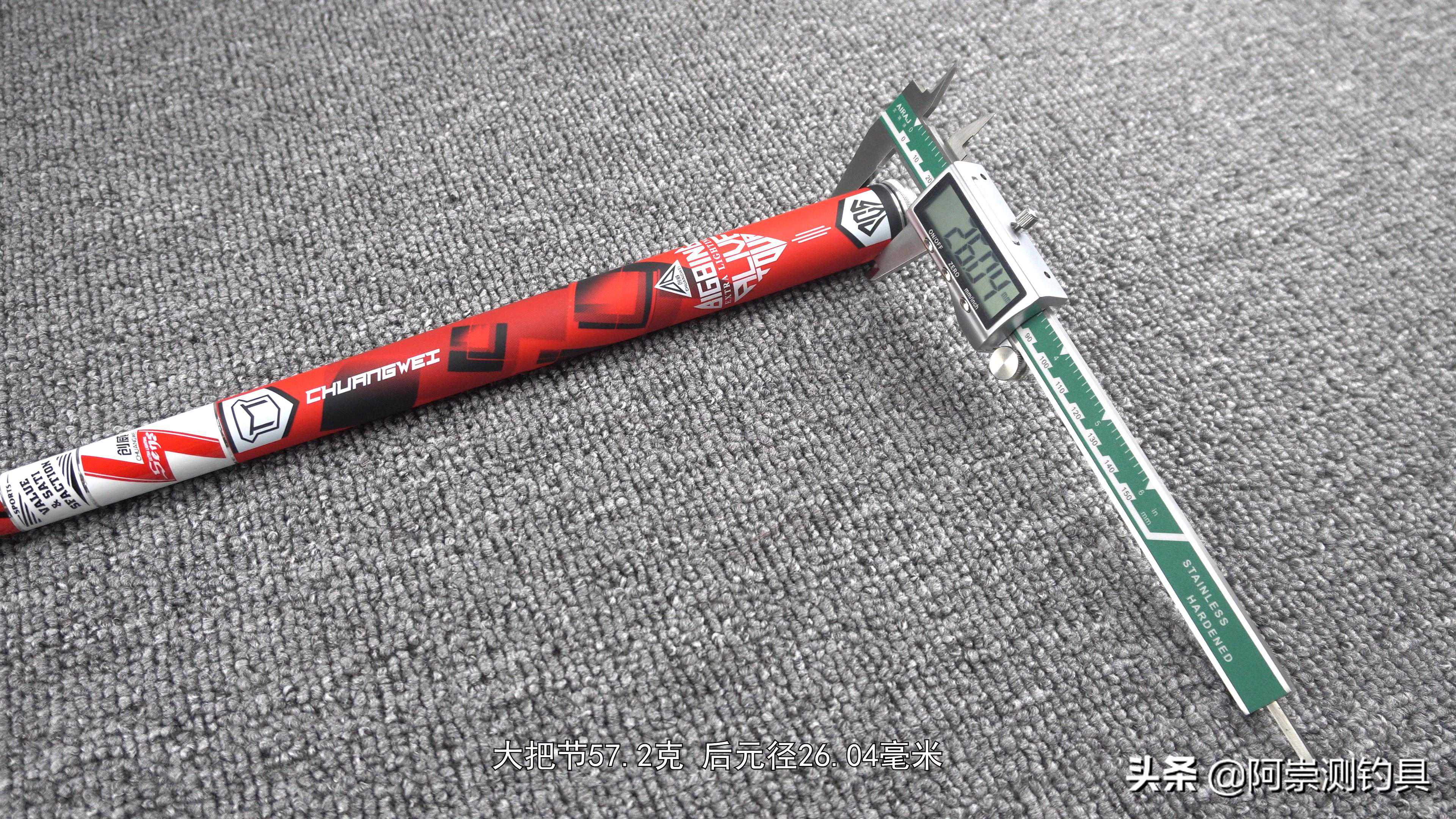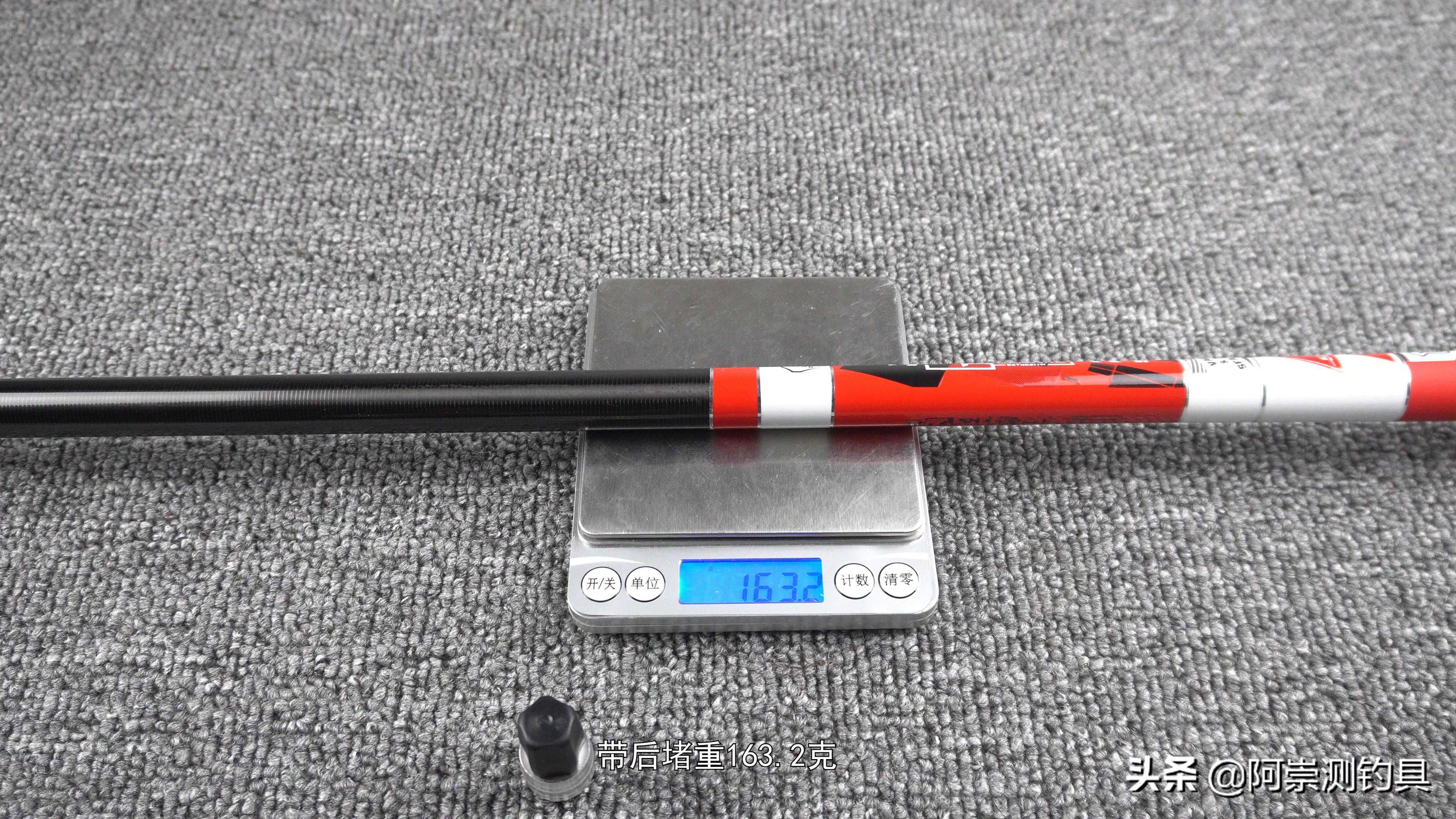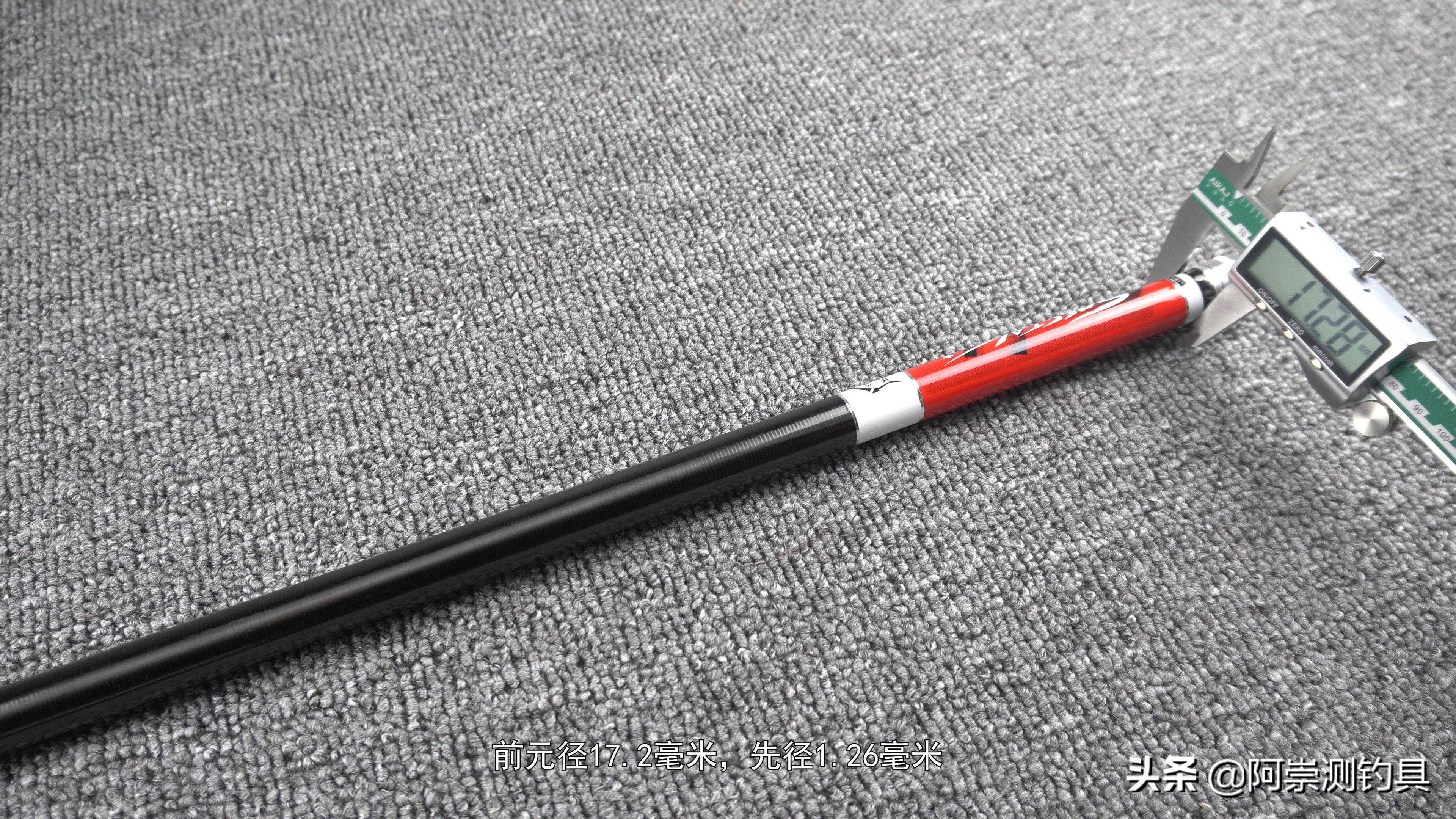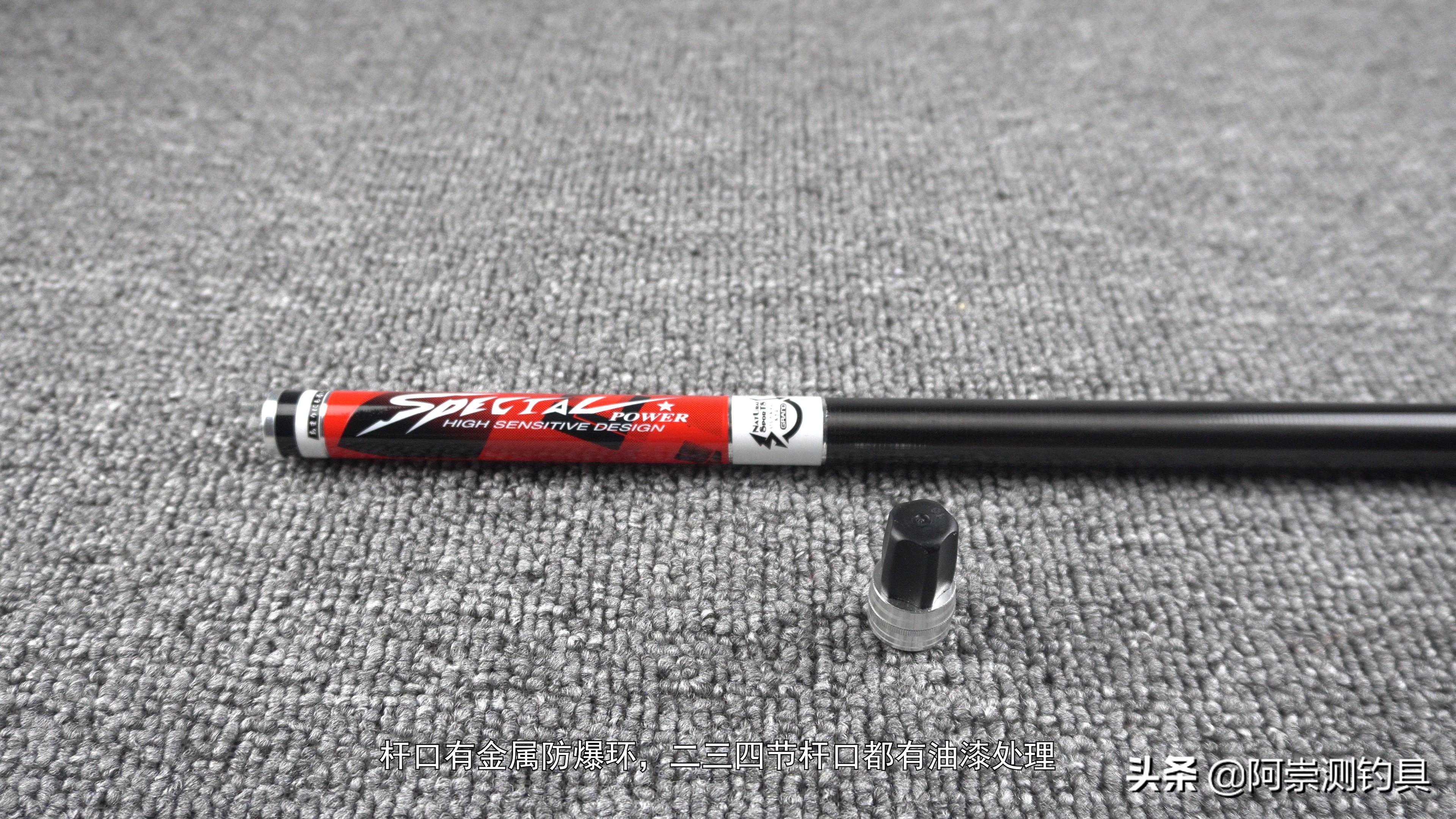 。握持感在1060克,但是他是使用大后堵调节来获得低握持感,这种设计会使得,像一些高频率的抛竿,比如像座钓鲢鳙,时间长一点就感觉有一些累。其实这个2800克的钓重,很像之前测试的汉鼎螺纹钢设计有点像,后端堆料,第一个点可以获得大钓重,第二点可以更靠后的平衡点,但是由于整杆价格,使用的也是低吨位的碳布,使得后端也没有腰力,甚至是塌腰,这种设计像钓小鱼那手感一般,钓大一点的个体控鱼非常困难。做工方面小的瑕疵也是非常的多。毕竟是百元级别的鱼竿