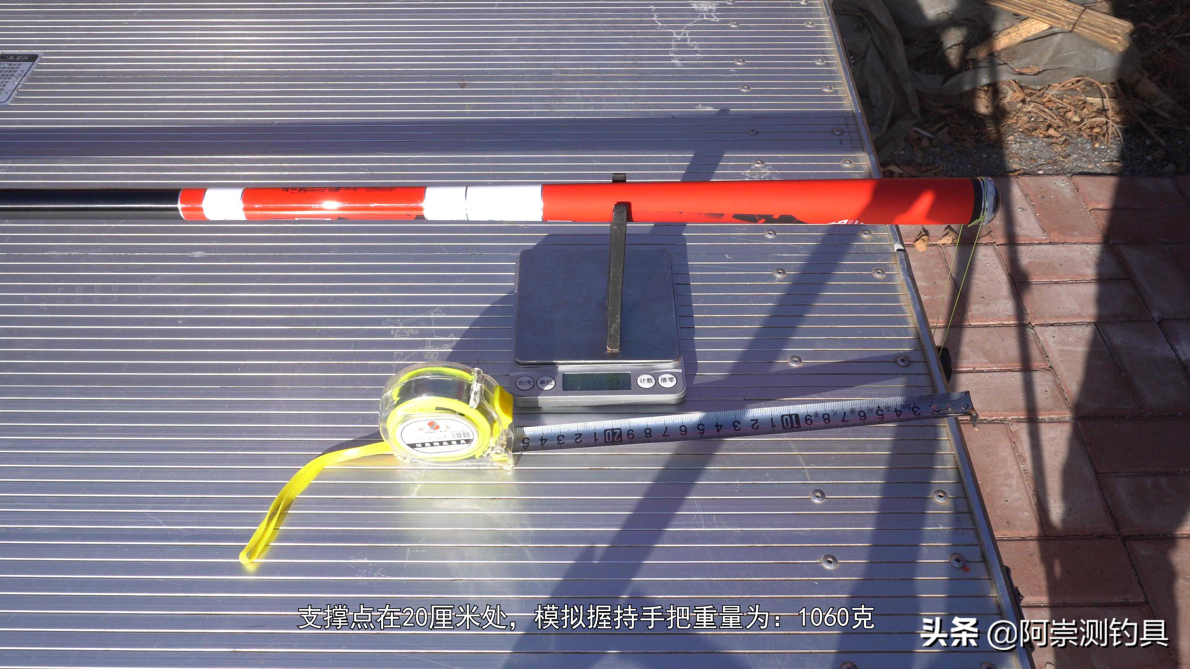 支撑点在20厘米处,模拟握持手把重量为:1060克