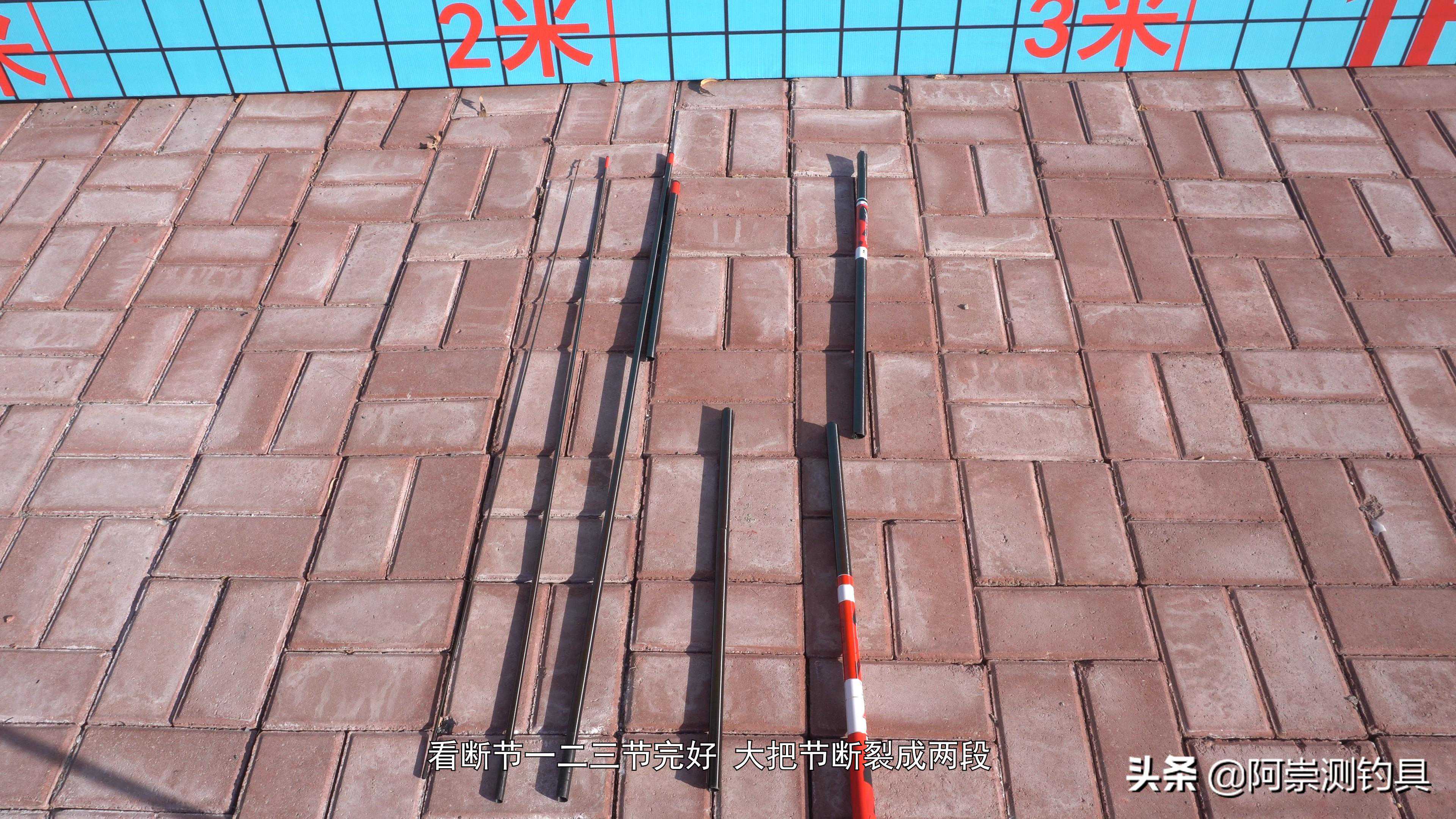 这只凌天最后在2800克爆杆,这点真的也是没有想到只和实际标注差了200克,看断节一二三节完好,四节断裂成三段,大把节断裂成两段,断口比较整齐,看断口也可以看到多层碳布