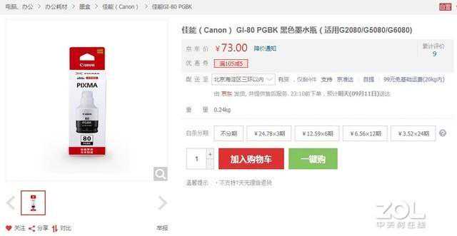 黑色墨水瓶GI-80PGBK售价仅73元,彩色墨水瓶GI-80C/M/Y每瓶售价仅55元,价格低廉越打越省。商用打印不论黑白还是彩色都印量更高、耐打耐用,而且还能随时补充,经济实用。