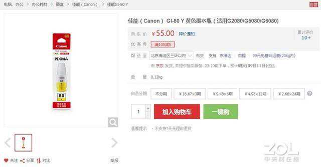 GI-80Y黄色墨水瓶CMY三色售价相同