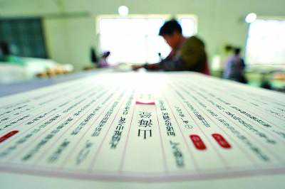河北南宫华宝古籍印刷有限公司工人在制作线装书。新华社发