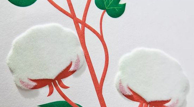 在纸上刷胶,再贴上绒毛的物质,让纸看上去和摸上去有点绒布的感觉,增加手感和立体感。大多运用在画册、邀请函、手提袋、名片等物料上。