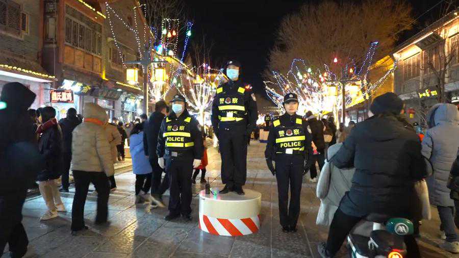 “我们从古城区北头一路逛到南头,每走几步就能看到站在台子上执勤的民警,很有安全感。”游客孟祥飞表示,元宵节,警察坚守在工作一线,为平安护航,让他很感动。