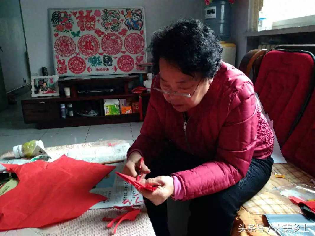 李老师沉浸在窗花艺术中,用大剪刀剪,小剪刀镂空,手动剪刀起,红红的纸屑簌簌落下。