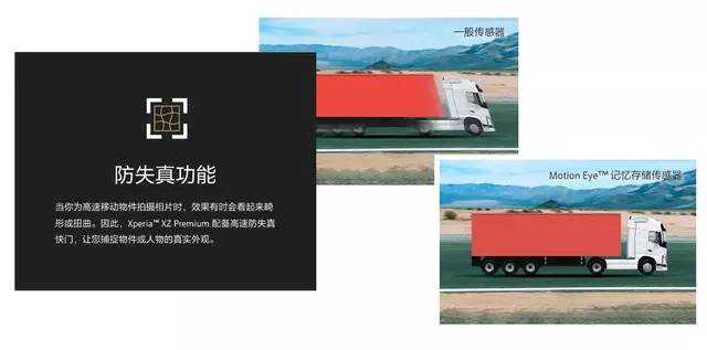 上面是索尼公布的一组对比图,左面是1/30秒下的逐行扫描图像,右面是IMX400的1/120秒逐行扫描图像,明显可以看出右边图像中移动的车头前端,倾斜的状况(果冻效应)得到了显著的修正。而在索尼中国官网对索尼XZPremium防失真功能的专项介绍中也配图证明了这一优势。