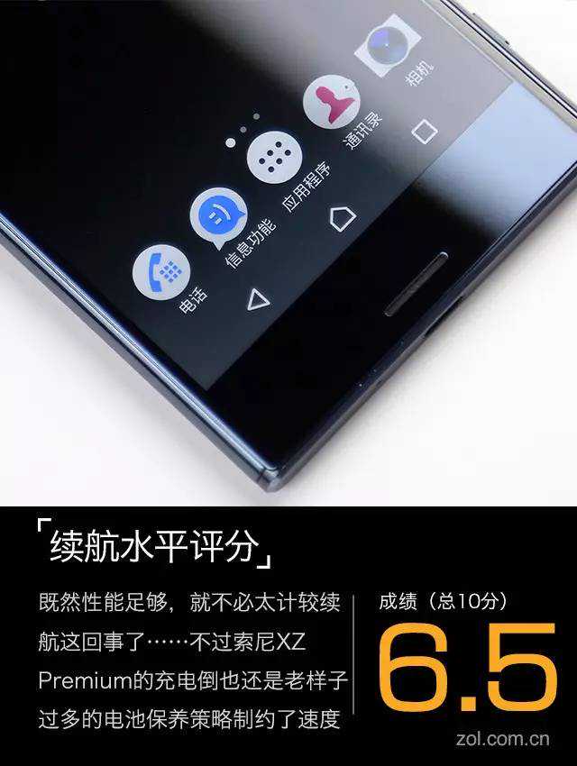 而美中不足的地方可能在于续航部分,3230mAh容量的电池在5小时续航测试结果并不算突出,而且搭载高通QC快充也没有让索尼XZPremium表现出应有的速度,大概是过多的电池保养策略限制了后段充电,整机充满需要160分钟左右。