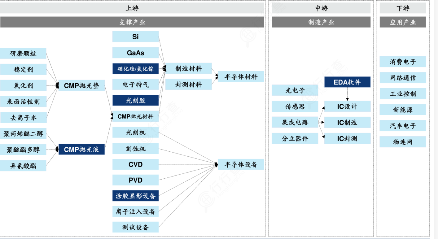 从产业链角度来看,行行查|行业研究数据库资料显示,涂胶显影设备位于半导体产业链的上游(支撑产业),涂胶显影设备既用于半导体晶圆制造(光刻环节),也用于半导体封测(涂胶、显影环节)、OLED制造(光刻环节)。