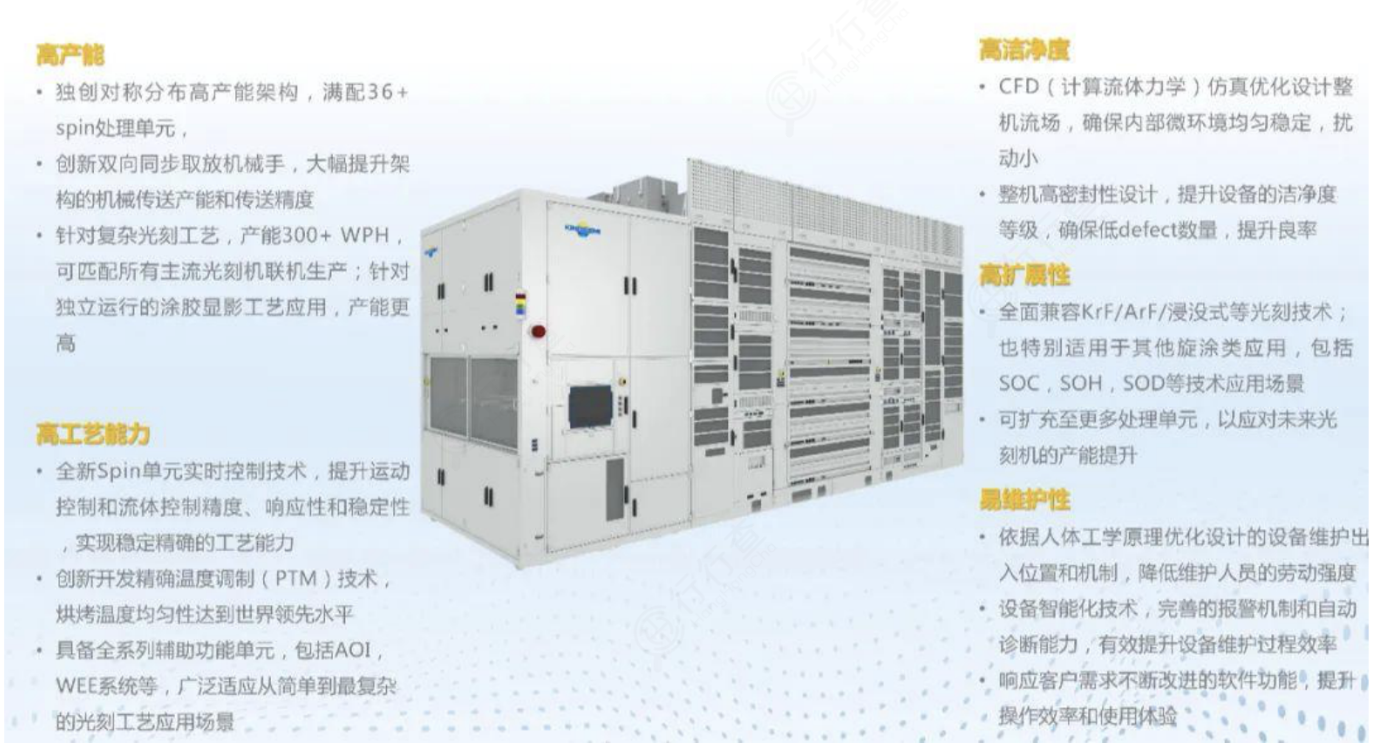 涂胶显影设备是与光刻机配合进行作业的关键处理设备,主要负责涂胶、烘烤及显影。